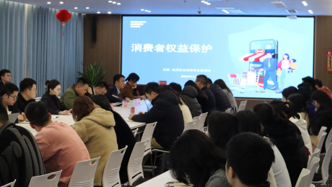 3月15日是国际消费者权益日,为增强公司全体员工的法律意识和维权意识,文旅公司邀请了贵州贵达律师事务所律师为全体员工进行《中华人民共和国消费者权益保护法》普法活动,引导员工依法维权,为营造公平、安全的消费环境贡献力量。