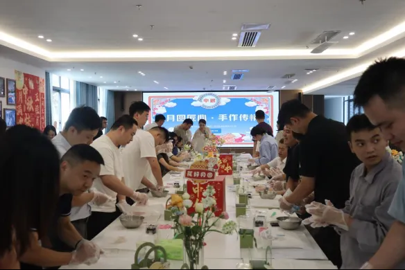 在专业烘焙老师的指导下,员工们亲自动手,体验了从准备材料、和面、包馅、压模到月饼成型的全过程。大家认真学习,互相交流心得,看着自己亲手制作的冰皮月饼从手中诞生,员工们脸上洋溢着满足笑容。